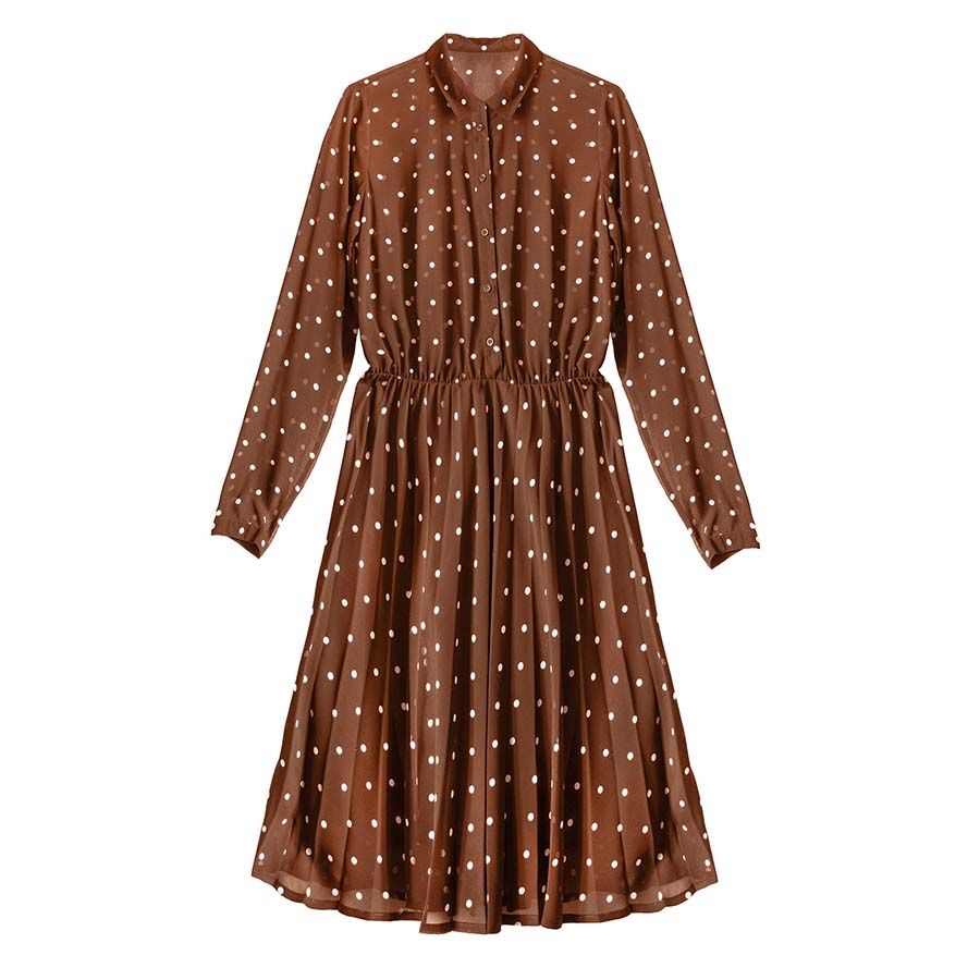 Szyfonowa sukienka w kropki – brązowa